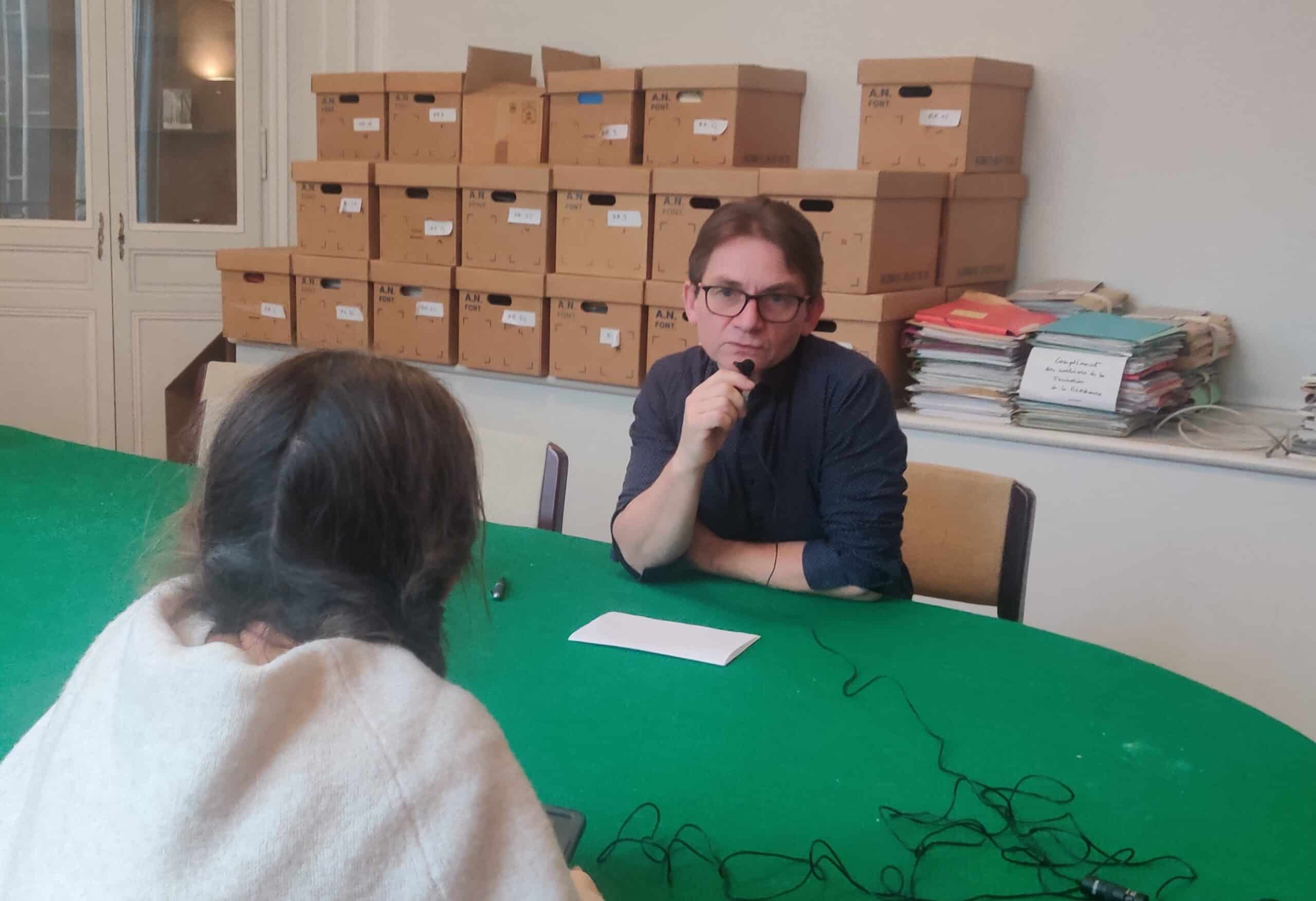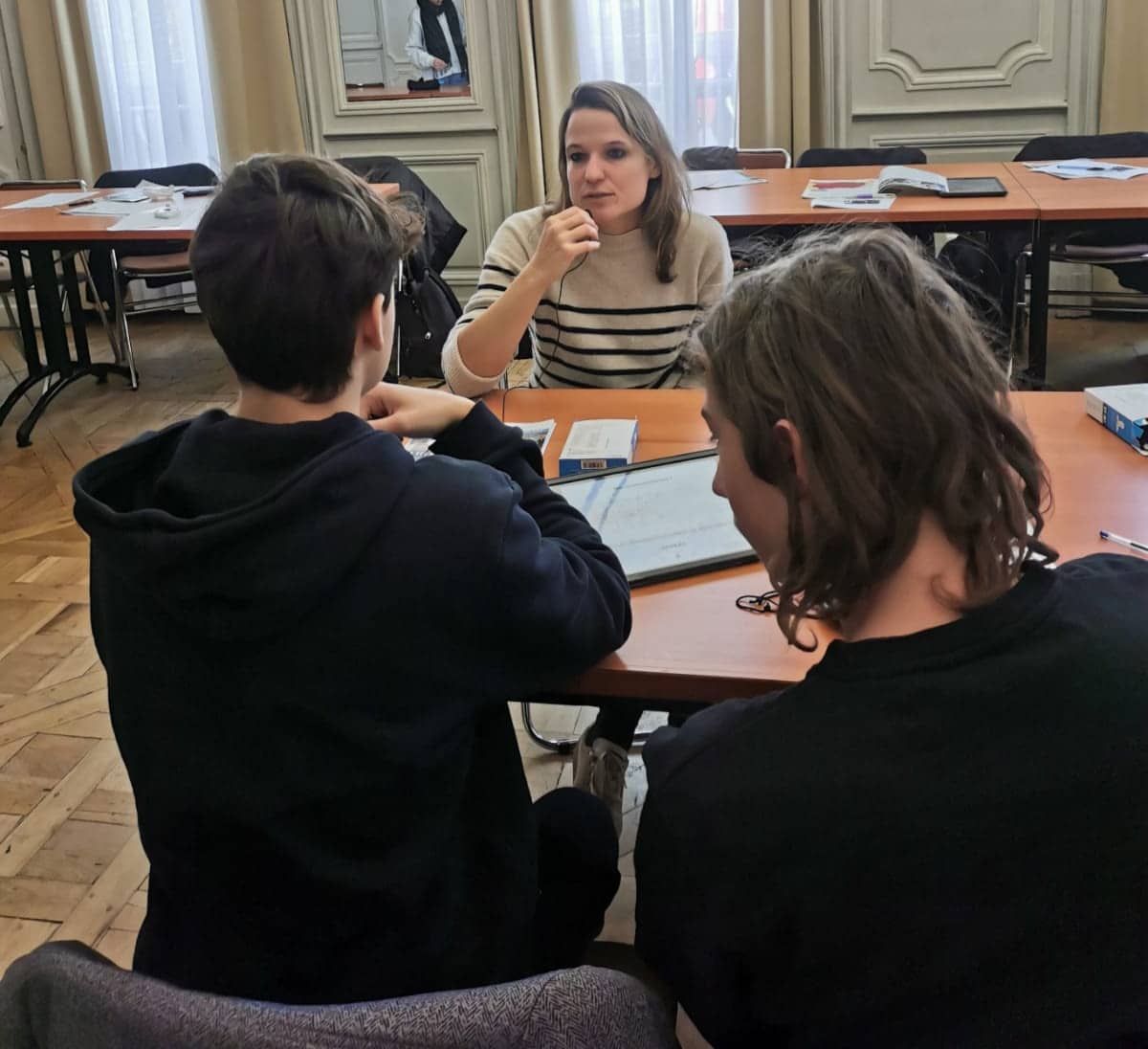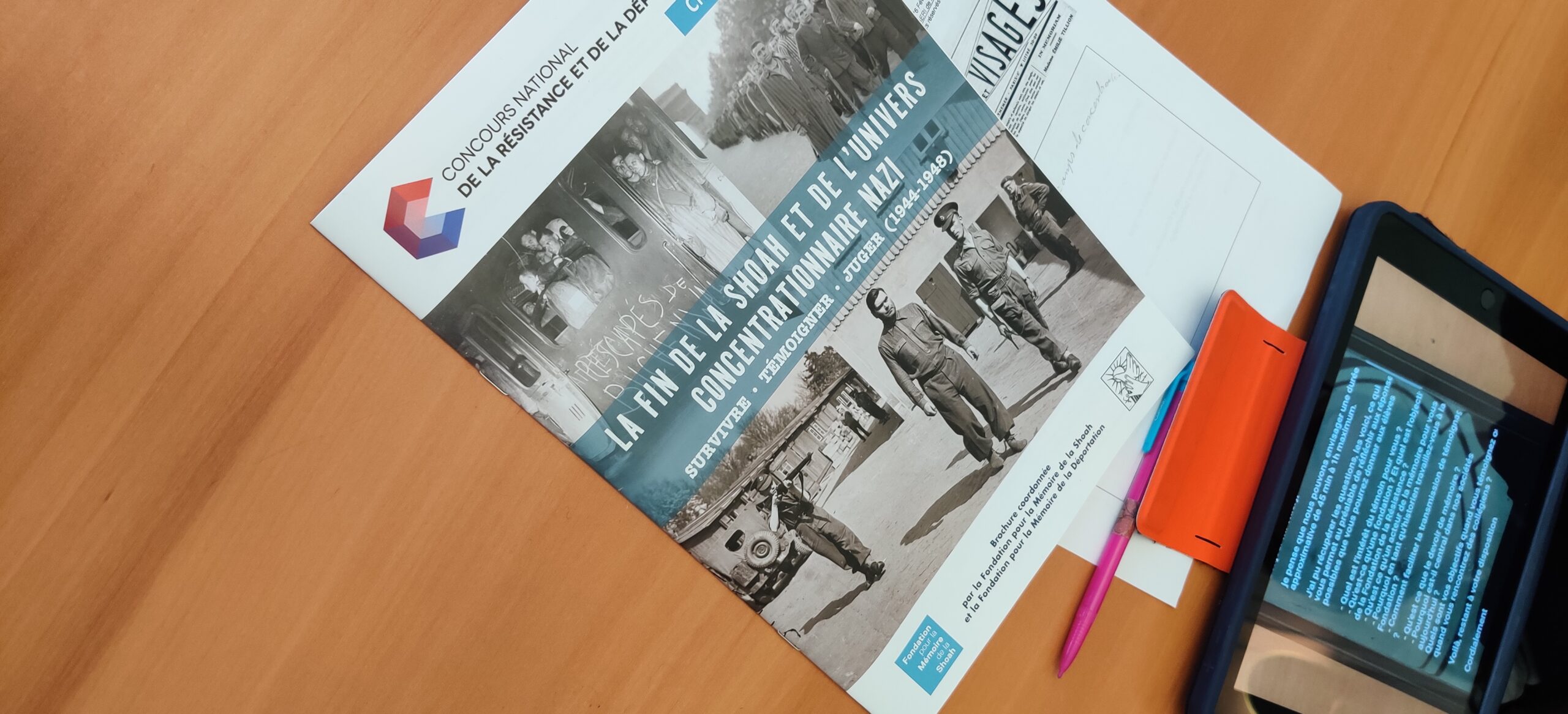 Jeudi 3 décembre, une classe de troisième du collège de l’Agiot d’Elancourt (Yvelines, Académie de Versailles) participant au CNRD a pu bénéficier d’une journée organisée par la Fondation de la Résistance. Le matin, les élèves ont assisté à une conférence introductive proposée par Raphaëlle Bellon (responsable des activités pédagogiques) et Laurent Thiery (chargé de recherches) autour du thème de cette session 2025-2026. A la demande des participants et participantes qui prévoient de réaliser un podcast, ils ont ensuite participé à une interview : les élèves ont posé des questions en lien avec le thème du concours mais aussi sur l’importance du témoignage ou sur la transmission de la mémoire.