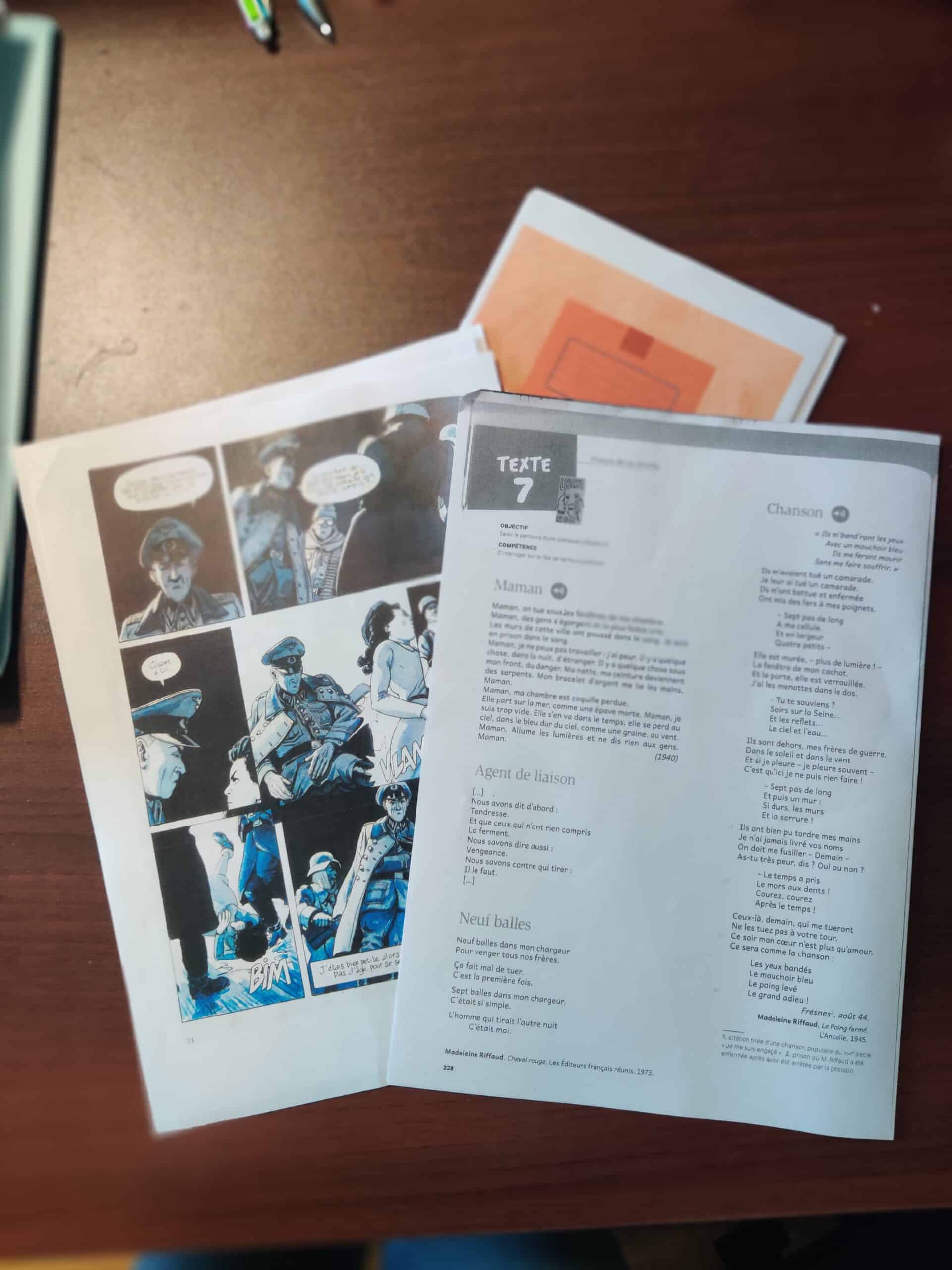 Mercredi 7 janvier, l’atelier portait cette fois sur Madeleine Riffaud. Après une activité introductive autour des femmes résistantes, au cours de laquelle les élèves ont réfléchi à partir de documents d’archives, ils ont étudié le parcours de Madeleine Riffaud. Après un premier travail autour de documents d’archives, ils ont analysé la websérie Madeleine, 20 ans, Résistante disponible sur Lumni enseignement. Cyrielle le Moigne Tolba, rédactrice en chef adjointe de cette plateforme très riche en ressources pédagogiques et dépendant de l’Institut national audiovisuel (INA), les a accompagnés pour décrypter les images du documentaire: l’occasion de réfléchir sur ce qu’apporte son témoignage, sur les choix de narration, sur la sélection des images d’archives, la construction du documentaire, etc. La période de la libération de Paris a été découverte à travers la BD de Bertail, Morvan et Riffaud, Madeleine, Résistante : l’occasion de réfléchir sur l’élaboration d’une bande dessinée historique, et sur son intérêt comme support de la transmission historique.
