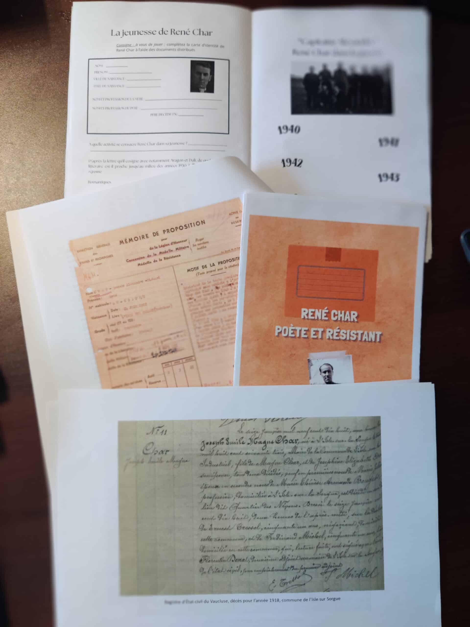 Lundi 5 janvier, Raphaëlle Bellon, responsable des activités pédagogiques de la Fondation de la Résistance, a proposé quatre heures d’atelier pédagogique autour de René Char. Après une entrée en matière poétique autour de citations du poète, les élèves ont travaillé à partir d’archives pour retracer son activité pendant la Résistance. Ils ont ensuite réfléchi sur des textes extraits des Feuillets d’Hypnos, avant d’étudier chacun leur tour un poème d’un autre artiste publié pendant la Résistance. La séance s’est terminée par une réflexion-débat sur le thème : est-il important d’écrire en période d’Occupation ? Cela est-il utile ?