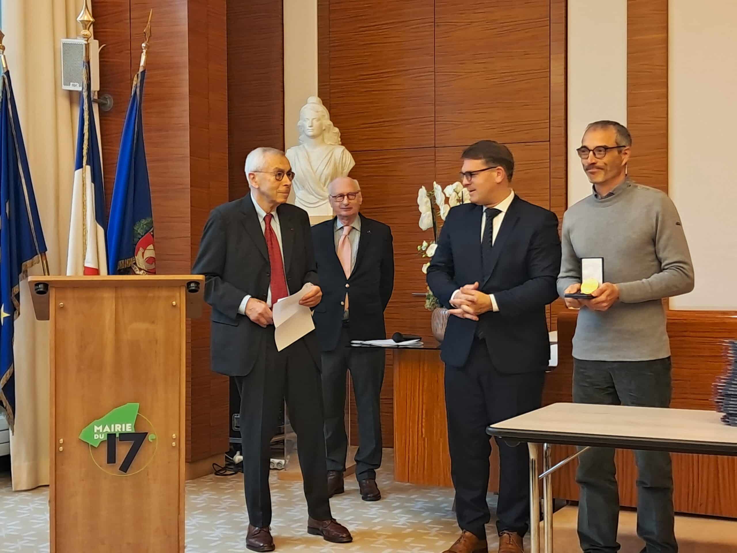 Geoffroy Boulard, maire du 17ème arrondissement, Michel Terrioux, adjoint en charge de la citoyenneté et de la mémoire, Gilles Pierre Lévy, président de la Fondation de la Résistance ont remis le prix à Pierre-Rolland Saint-Dizier, auteur de l’ouvrage, le jeudi 4 décembre à la mairie du 17ème en présence des élèves de l’école Truffaut et de leurs enseignants auxquels il a été rendu hommage